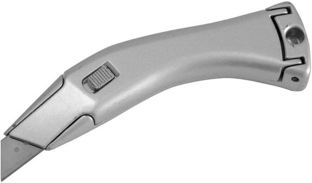 Nóż metalowy do wykładzin z ostrzem trapezowym Proline 30307 Ostrze trapezowe stałe. Korpus metalowy z blokadą ostrza. Magazynek na ostrza. Ostrza 62mm sprzedawane po 10 szt: Proline 31302, Mega 31301. Ostrza 62 mm hakowe sprzedawane po 5 szt: Proline 31304, Proline 31305. Kod produktu: 30307 EAN: 5903755303073