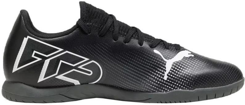 Buty piłkarskie Puma Future 7 Play IT Jr 107739 Właściwości: Buty piłkarskie Puma przeznaczone są dla chłopców, którzy preferują rekreacyjne rozgrywki na halach wewnętrznych. Fason pochodzi z kolekcji Eclipse Pack. Cholewka o niskim profilu wykonana ze skóry syntetycznej w połączeniu z klasycznym sznurowaniem odpowiada za uzyskanie naturalnego dopasowania. Teksturowany nadruk zadba o lepsze panowanie nad piłką, a dzianinowy język wpiera proces wentylacji. Gumowa podeszwa zewnętrzna nie pozostawia śladów na parkiecie i pozwala stopniować szybkość. Halówki są znakomitym wyborem gdyż, są kombinacją poszukiwanych przez zawodników cech: doskonałe wyczucie piłki, elastyczne wsparcie, stabilizacja. Materiał: tworzywo syntetyczne Kolor: czarny