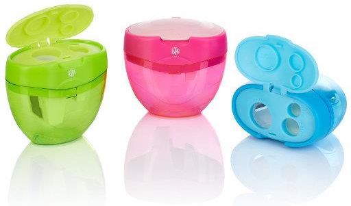 Temperówki z pojemniczkiem i potrójnym, zamykanym otworem. dwie średnice strugania otwierany pojemniczek produkt w miksie trzech kolorów (wysyłane losowo) trzy różnej wielkości otwory duża pojemność zbiornika ergonomiczny kształt polski producent cena dotyczy jednej sztuki produktu