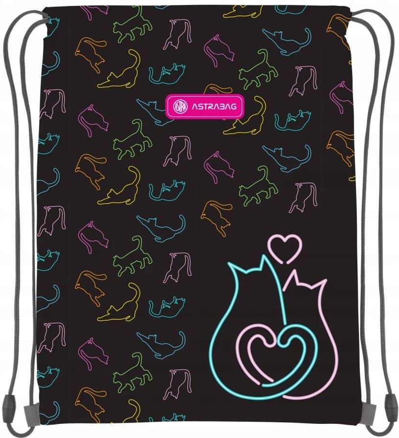 AstraBag Worek Szkolny Na Sznurkach LOVE 507023018 Worek na obuwie posiada czarno-różową kolorystykę oraz uroczą grafikę dwóch zakochanych kotków, które skradną serce każdej dziewczynki i miłośniczki mruczków Jest idealnym uzupełnieniem dla plecaków i piórników z serii LOVE. Worek posiada podwójne …