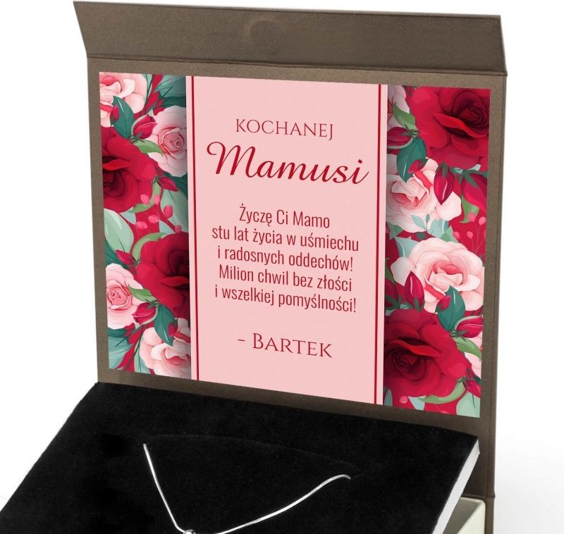 Parametry Zawieszka srebro próby 925 wymiary: 15 x 15 mm waga: ok. 1,95 g Łańcuszek srebro próby 925 długość: 50 cm waga: 3,7 g typ splotu: żmijka Pudełko wymiary: 16 x 16,5 x 3 cm wewnątrz pudełka kartka z nadrukiem dedykacji najwyższa jakość i efektowna prezencja Personalizacja Aby w pełni …