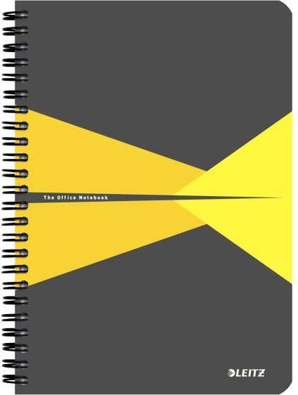 Kołonotatnik Leitz Office A4 PP format A4 w kratkę okładka z mocnego polipropylenu 90 kartek wykonanych z papieru 90g z certyfikatem FSC® specjalnie wykończony, nieprzeźroczysty papier tworzy powierzchnię, po której łatwo i bez rozmazywania można pisać każda kartka posiada obramowanie pola z liniami co umożliwia lepszą organizację notatek oraz miejsce na tytuł i datę na górze strony wyjmowana linijka, która może służyć jako zakładka oprawa spiralna umożliwiająca 360-stopniowe otwarcie kołonotatnika perforacja kartek z nacięciem do łatwiejszego ich odrywania wymiary: 225x13x297mm kolor szaro-żółty
