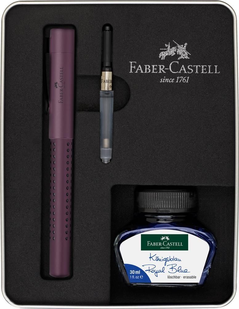 Zestaw prezentowy z piórem wiecznym Faber-Castell z limitowanej edycji Grip 2011 w kolorze Berry, konwerterem i atramentem 30 ml. Wyjątkowy i nowoczesny design z matowym wykończeniem. Posiada opatentowaną strefę GRIP z małymi antypoślizgowymi punktami (3D) w kolorze czarnym dla zapewnienia pewnego uchwytu i komfortu pisania. Wyposażony w solidny i elastyczny metalowy klips oraz dopracowaną, wytrzymałą czarną stalówkę w rozmiarze M z irydową końcówką o idealnym przepływie atramentu. Ergonomiczna, antypoślizgowa strefa uchwytu i idealne wyważenie, zarówno bez, jak i ze skuwką, zapewniają doskonałe wrażenia podczas pisania. Kolor Berry.
