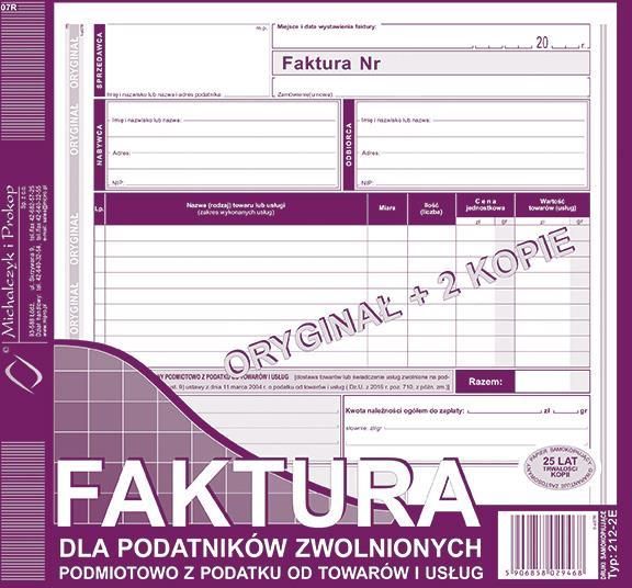 Faktura - Wzór Pełny Dla Prowadzących Sprzedaż W Cenach Brutto (13809) Boguchwała