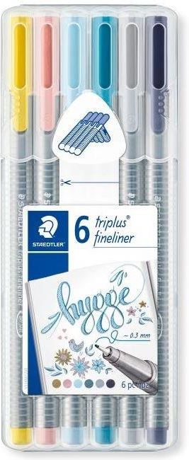 powystawowe , brakuje 1szt , przeceniony Pisak STAEDTLER triplus z końcówką włóknistą 5szt Długopis z ergonomicznym trójkątnym trzonkiem do swobodnego pisania i malowaniaSUCHY BEZPIECZNY – można go pozostawić bez skuwki przez kilka dni bez wysychania, z wyjątkiem kolorów neonowych. Wał PP gwarantuje długą żywotnośćAtrament na bazie wody, łatwo zmywalny z większości tekstyliówZakres dostawy: 5 flamastrów triplus w kolorach „hygge” w stojącym pudełku STAEDTLER