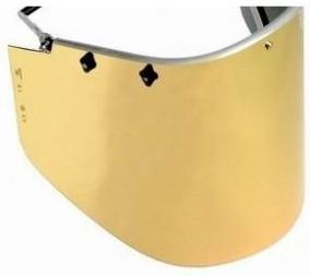 Wymienny filtr chroniący przed promieniowaniem podczerwonym do nahełmowej osłony twarzy typu OCAM-57. Stopień ochrony: 4-3 / 4-5 WŁAŚCIWOŚCI FILTRÓW Filtry chroniące przed promieniowaniem podczerwonym stanowią bardzo skuteczną ochronę oczu odbijając promieniowanie podczerwone w ponad 90%. Dzięki temu, ich nagrzewanie się w polu intensywnego oddziaływania wysokich temperatur następuje znacznie wolniej niż np. filtrów absorpcyjnych. Umożliwia to, przy pracach w warunkach promieniowania temperaturowego, nieprzekraczanie dopuszczalnych poziomów natężenia napromieniowania oczu przez znacznie dłuższy czas. Systematyczne przekraczanie przez soczewkę oczną temperatury 42 st.C, powodowane właśnie promieniowaniem podczerwonym prowadzi do jej zmętnienia, zwanego zaćmą hutniczą. Przy wyborze filtrów chroniących przed podczerwienią uwzględnia się wyłącznie średnią temperaturę źródła promieniowania (od 1050 st.C do 2150 st.C) i na tej podstawie określa się stopień ochrony (stopień zaciemnienia) filtra.