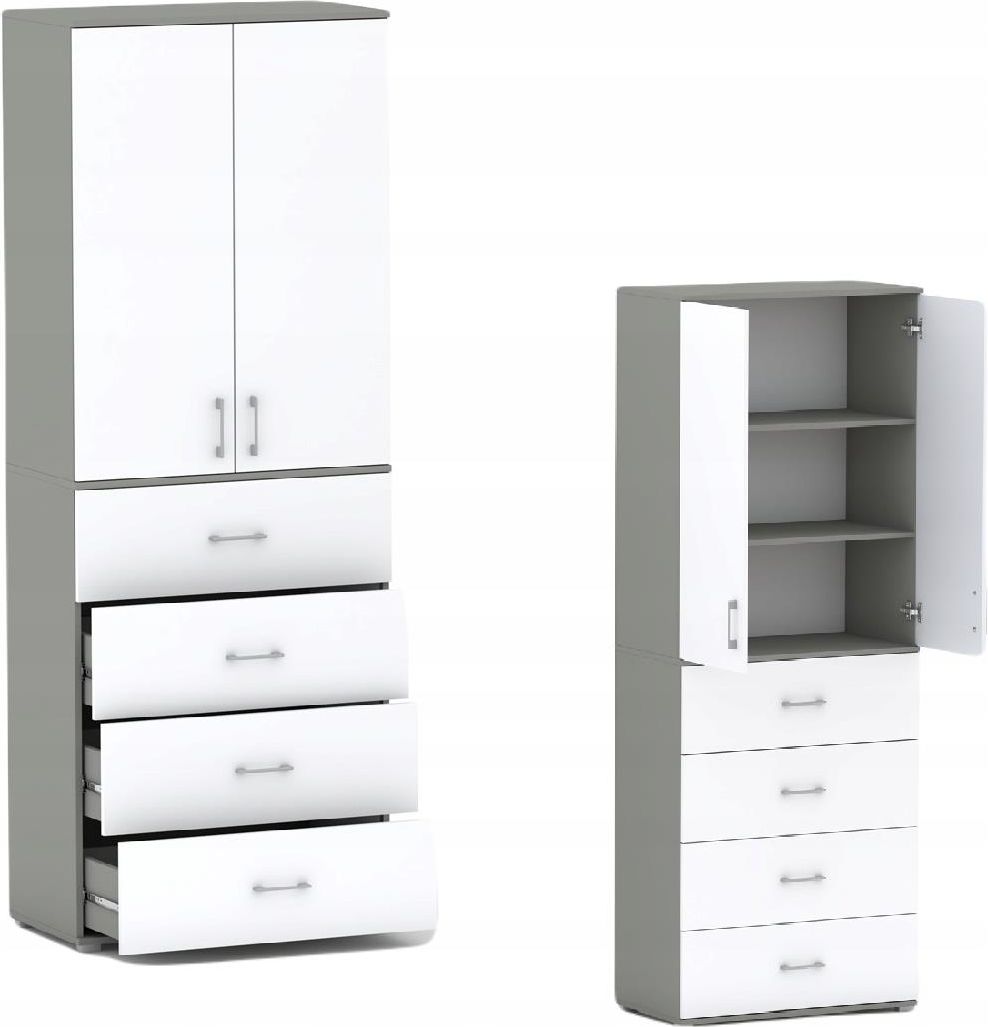 Meblobol Regał Szafa Biurowa Z Szufladami 215 Relic 4S3P2D Szary / Biały 80x40cm Boguchwała