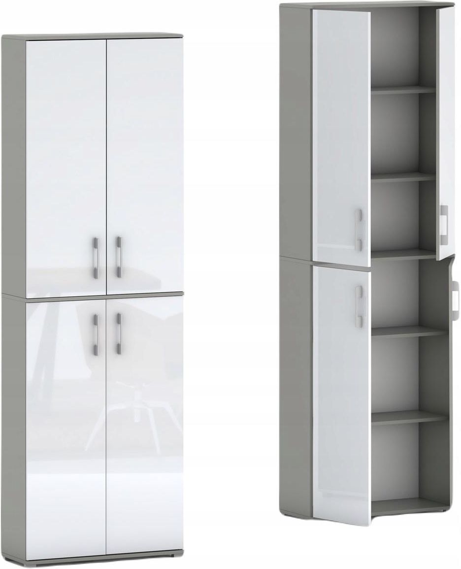 Meblobol Szafa Biurowa Na Dokumenty Relic 4D Szara / Biały Połysk 215x60x32cm Boguchwała