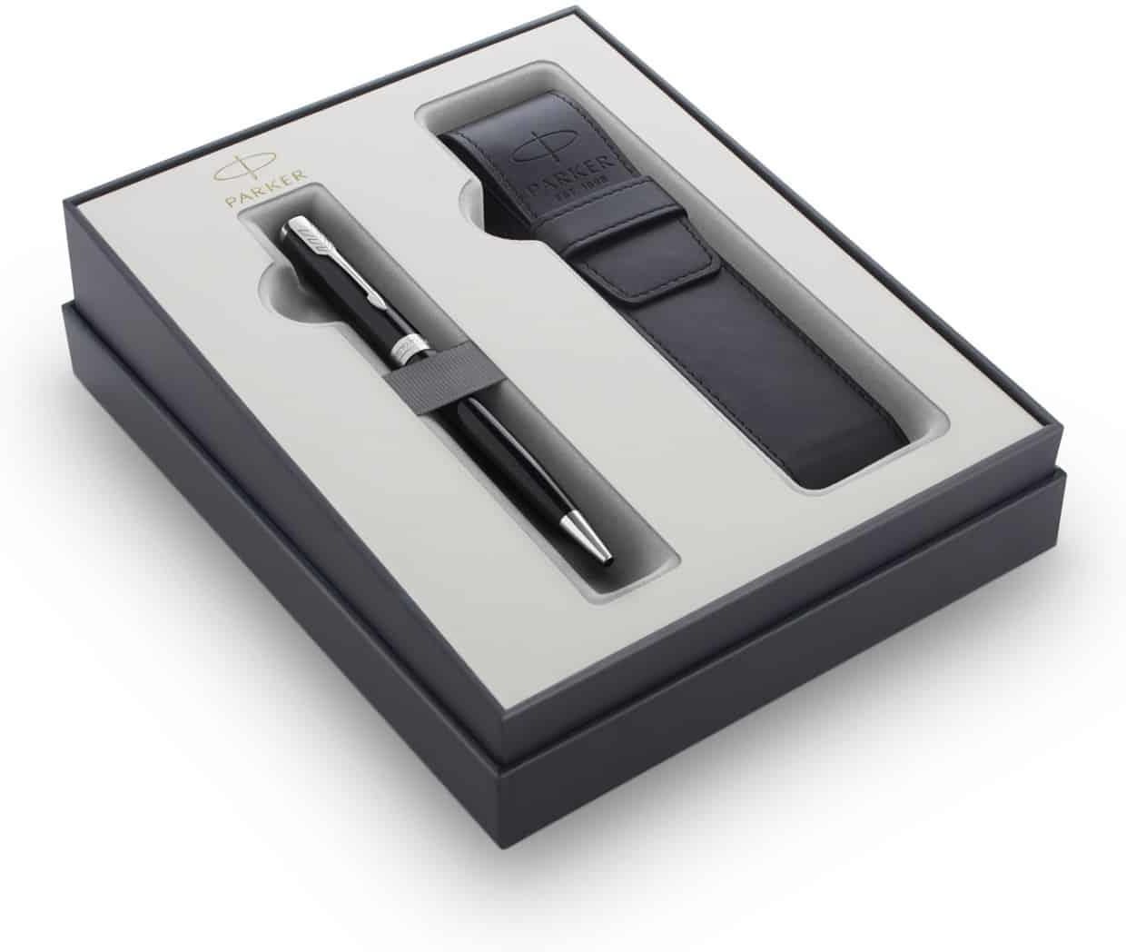 Długopis i dopasowane czarne etui z PU na długopis, zapakowane w klasyczne pudełko upominkowe Parker.Nowa kolekcja upominków przywodzi na myśli luksus i elegancję. Każde opakowanie prezentowe, odzwierciedlające tożsamość marki, zostało zaprojektowane z pasją i przyciąga wzrok wyjątkowymi zdobieniami. Produkty zostały specjalnie dobrane tak, aby stworzyć prezent idealny na każdą okazję.W tym zestawie znajdziesz długopis i dopasowane czarne etui z PU na długopis zapakowane w klasyczne pudełko upominkowe Parker. Zestaw ten zawiera idealne akcesorium, które pozwala piszącemu zabrać pióro ze sobą. Idealny upominek na każdą okazję. Długopis i dopasowane czarne etui z PU na długopis, zapakowane w klasyczne pudełko upominkowe Parker. Każde opakowanie prezentowe, odzwierciedlające tożsamość marki, zostało zaprojektowane z pasją i przyciąga wzrok wyjątkowymi zdobieniami. Produkty zostały specjalnie dobrane tak, aby stworzyć prezent idealny na każdą okazję. Zestaw ten zawiera eleganckie etui z logo Parker, które pozwala piszącemu zabrać długopis ze sobą. Idealny upominek na każdą okazję.