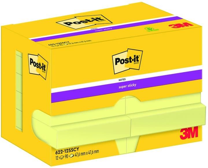 Post-It Super Sticky Karteczki Samoprzylepne 47,6x47,6mm Żółte 12 Opak. Boguchwała