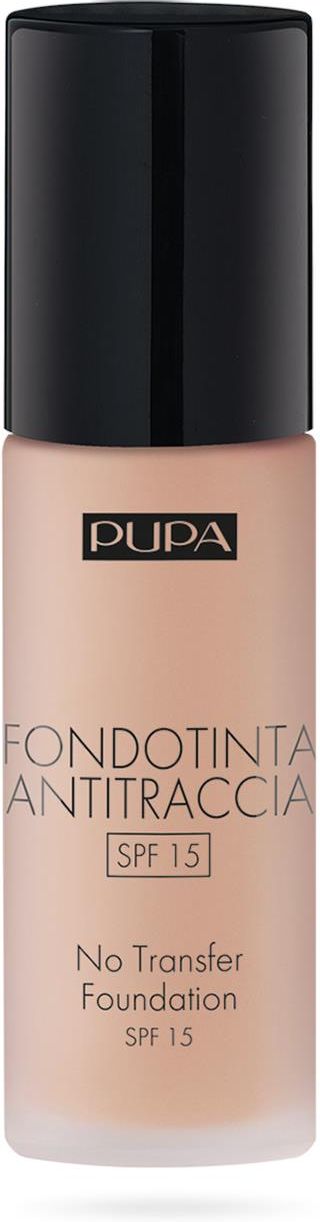 Pupa Podkład No Transfer 300 Podkład do twarzy o nieskazitelnej trwałości. Utrzymuje się na skórze nawet przez 14h. Nie pozostawia śladów na ubraniach, a przy tym nawilża skórę i jest komfortowy w ciągu dnia. Posiada jedwabistą konsystencję, zapewnia matowy wygląd skóry. Dostępny w kilku wersjach kolorystycznych. Produkt zamknięty w wygodnym opakowaniu z pompką. Wzbogacony filtrem ochronnym SPF15. Odcień: 300 Pojemność: 30ml