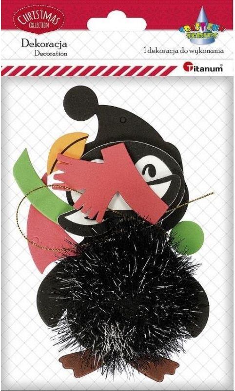 Dekoracja świąteczna do złożenia Pingwinek Titanum Piankowy pingwin z brzuszkiem z pomponu Zestaw zawiera wszystkie elementy potrzebne do złożenia dekoracji Nie potrzeba kleju czy nożyczek Wymiary złożonego pingwinka: 100 x 178 mm Produkt doskonały dla profesjonalistów, hobbystów i amatorów rękodziełą