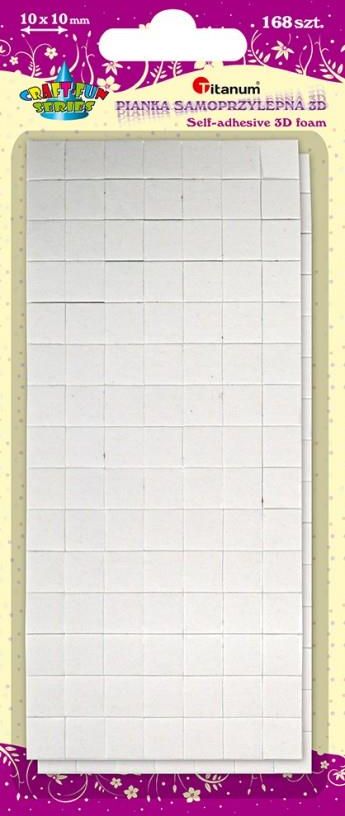Specyfikacja: Piankowa taśma dwustronnie klejąca w formie kosteczek, Pozwala na uzyskanie efektu 3D w projektach plastycznych, niezastąpiona przy tworzeniu kartek okolicznościowych i zaproszeń, Narzędzie w technice scrapbookingu i cardmakingu, Pianki samoprzylepne, Dwustronne, W formie przyciętych kostek, Rozmiar: 10 x 10mm, Opakowanie zawiera 168 kostek.
