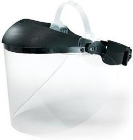 Lekka osłona twarzy wykonana z mocnego poliwęglanu z wbudowaną osłoną czołową. Pokrętło umożliwia łatwą i niezawodną regulację dla każdego rozmiaru głowy. Mechanizm podnoszenia osłony typu flip-up, umożliwia ustawienie osłony w każdej pozycji. Łatwa wymiana szybki, znacząco obniża koszty eksploatacji. Nadają się do noszenia na półmaskach ochronnych. Podnoszą się za pomocą mechanizmu zawiasowego. Zapewnia optymalny komfort użytkowania, nawet przy dłuższych okresach użytkowania. Waga 190 g Materiały: Ramka: poliwęglan Kolor czarny Szybka: octan celulozy o grubości 1,0 mm Powłoka utwardzana, nieparująca kolor bezbarwna Wymiar szybki po rozwinięciu: 540x195x1,0 mm Szybka wymienna: 9050.517 ZASTOSOWANIE Dodatkowa ochrona twarzy przed bryzgami cieczy i unoszącymi się cząstkami NORMY I CERTYFIKATY Oznaczenia: Ramka W (producent) 166 (norma EN) 3 (ochrona przed cieczami) F (odporność 45 m/s) DIN CE (notyfikacja) Szybka W (producent) 1 (klasa optyczna) F (odporność 45 m/s) DIN CE (notyfikacja) EN 166 EN 170