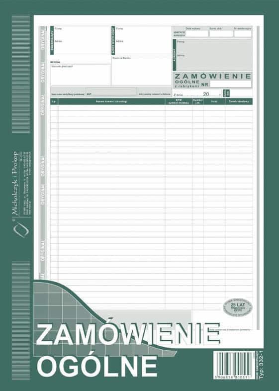 papier: samokopiujący druk: jednostronny (oryginał + kopia) oprawa: bloczek 80 kartek