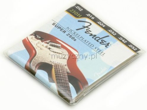 Struny FENDER 250H do gitary elektrycznej012 - 052 (E1-012, H2-016, G3-024, D4-032, A5-042, E6-052)bardzo wysoka jakość wykonaniawiolinowe struny - stalowebasowe struny - niklowana owijkastruny hermetycznie zafoliowanepakowane w kartonik