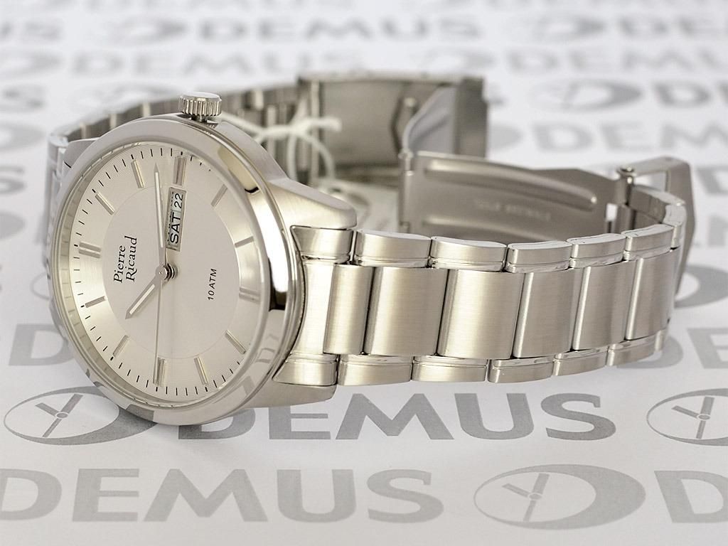 Elegancki zegarek męski renomowanej szwajcarskiej marki Pierre Ricaud - P15477.5123Q Model P15477.5123Q posiada kwarcowy mechanizm Citizen Miyota 2105 Swiss Made zasilany baterią, dzięki czemu wskazanie czasu jest bardzo dokładne - granica błędu tego typu mechanizmów wynosi zaledwie 10 sekund w skali miesiąca, a bateria wystarcza średnio na 2 lata użytkowania. Zegarek został wykonany z wysokiej jakości stali szlachetnej. Kolejnym atutem jest pokrywające tarczę, szkiełko mineralne. Jasna tarcza zegarka jest subtelna lecz wyraźna i czytelna. Srebrne wskazówki i cyfry arabskie korespondują z kolorystyką koperty. Model jest wyposażony w datownik wskazujący dzień miesiąca i nazwę dnia tygodnia. Klasa wodoszczelności tego modelu to 50 M (5 ATM) co oznacza, że zegarek jest wodoszczelny, można go przypadkowo zamoczyć ale nie zaleca się jednak w nim pływać z uwagi na działające wówczas ciśnienie dynamiczne. Wymiary: Szerokość koperty 40 mm Grubość koperty 9 m Waga 95 g Zegarek wysyłamy w oryginalnym, eleganckim opakowaniu (twarde pudełko wraz z ozdobną, papierową torebką) z dołączoną gwarancją oraz dowodem zakupu. Wszystkie oferowane przez nas zegarki pochodzą z oficjalnej, polskiej dystrybucji. Posiadają oryginalne opakowania, kartę gwarancyjną ważną na terenie całej Polski oraz Unii Europejskiej oraz instrukcję obsługi w języku polskim i angielskim