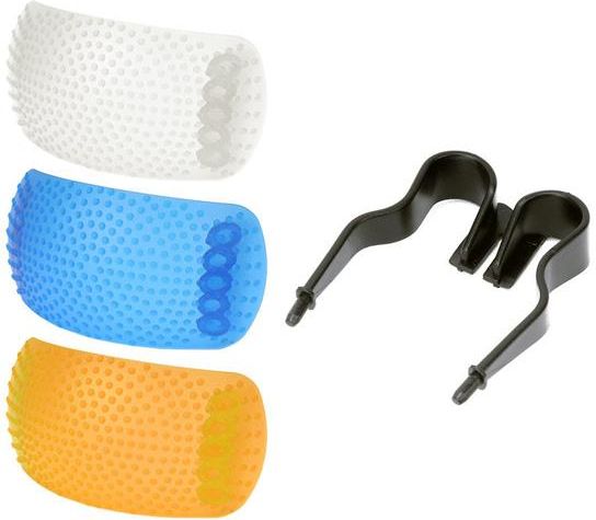 Dyfuzor uniwersalny do lamp wbudowanych typu POP-UP + 3 kolorowe nasadki (niebieska, biała i pomarańczowa) do wszystkich aparatów posiadających gorącą stopkę typu PC Produkt firmy MASSA Dyfuzor jest przeznaczony do lamp wbudowanych typu POP-UP, do aparatów cyfrowych, cechuje się niezwykłą konstrukcją pozwalającą wykonywać jeszcze lepsze zdjęcia bez dokupowania drogich lamp błyskowych. Dyfuzor rozprasza światło wbudowanej lampy błyskowej, dzięki czemu staje się ono bardziej naturalne, miękkie, a obszar oświetlenia jest dużo większy. Zestaw składa się z a) dyfuzora POP-UP, zbudowanego z mocnego i odpornego na czynniki atmosferyczne tworzywa, b) trzech kolorowych nasadek (biała, niebieska, żółta). Każda z nich posiada pięć stopni regulacji, dzięki temu sami możemy decydować o zakresie i stopniu oświetlenia kadru. W zestawie znajdują się trzy rodzaje nakładek rozpraszających: 1. Biała nasadka - rozpraszająca światło, zwiększająca pole oświetlenia oraz kontrast kadru, 2. Niebieska nasadka - powodująca ochłodzenie kadru, kasująca nadmiar kontrastu i przebarwienia kolorystyczne, 3.Pomarańczowa nasadka- umożliwiająca uwydatnienie bladości i usunięcie zbędnych odbić z kadru, zwiększająca nasycenie kolorów, szczególnie przydatna podczas fotografii portretowej i krajobrazowej. Dyfuzor ten doskonale współpracuje m.in. z następującymi aparatami fotograficznymi oraz nowszymi modelami: Canon EOS: 800D / 760D / 750D / 77D / 1300D / 1200D / 700D / 70D / 100D / 60Da / 60D / 600D / 1100D / 550D / 500D / 450D / 400D / 350D / 300D / 1000D / 50D / 40D / 30D / 20D / 10D / D30 / D60 / Digital Rebel Canon Powershot: Pro1 / SX50 HS / SX40 HS / G1X / SX10 IS / SX20 IS / SX1 IS / SX30 IS Nikon: D5600 / D5500 / D3400 / D3300 / D7200 / D500 / D5300 / D7100 / D5200 / D3200 / D800 / D800E / D5100 / D7000 / D5000 / D3100 / D3000 / D40 / D40X / D50 / D60 / D70 / D70s / D80 / D90 / D100 / D200 / D300 D700 Olympus: OM-D E-M10 / OM-D EM-5 / OM-D EM-1 / E-30 / E-620 / E-520 / E-510 / E-500 / E-420 / E-410 / E-400 / E-450 Pentax: K-S1 / K-S2 / KF / K-50 / K-500 / K-5 II / K-5 IIs / K-30 / K-5 / K-r / K-x / K-m / K-7 / K20D / K10D / K200D / K100D / K110D Panasonic: FZ50 / FZ30 / G1 / GH1 / G2 / GH2 / G3 / GH3 Fujifilm: S6000fd / S9000 / S9100 / S7000 / S602 / S1 Pro / S2 Pro / S3 Pro / S5 Pro / HS10 / HS11 / HS20 EXR / HS22 EXR / HS25 EXR / HS28 EXR / HS30 ESR / HS33 EXR / HS35 EXR / HS50 EXR / X-S1 Przykład zastosowania dyfuzora POP-UP . ZDJĘCIE WYKONANE BEZ DYFUZORA NA LAMPIE BŁYSKOWEJ WBUDOWANEJ ZDJĘCIE WYKONANE Z DYFUZOREM typu POP-UP NA LAMPIE BŁYSKOWEJ WBUDOWANEJ Dyfuzor montujemy na stopce aparatu. Dyfuzor posiada pięć par elementów mocujących, które umożliwiają regulację wysokości urządzenia, co zdecydowanie zwiększa zakres kontroli nad rozproszeniem światła. Posiadając dyfuzor na lampie błyskowej mogą Państwo zrobić dużo lepsze zdjęcie. Szczególnie przy nastawieniu obiektywu na szeroki kąt. Dzięki dyfuzorowi otrzymują Państwo światło bardziej rozproszone, równomiernie rozłożone na większej powierzchni. Dyfuzor jest niezbędny przy robieniu zdjęć grupowych w pomieszczeniach. W ten sposób możemy uzyskać bardziej naturalny obraz. Nakładka jest bardzo łatwa w użyciu ? wystarczy ją nałożyć na gorącą stopkę w aparacie. Sama nakładka zajmuje niewiele miejsca w torbie, czy plecaku. Główne zalety dyfuzorów zdolność pozyskania równomiernego, miękkiego światła, zmiękczenie cieni w tle, zdolność dokładnego naświetlenia drugiego planu, brak efektu "czerwonych oczu", naturalne kolory przy fotografii portretowej.