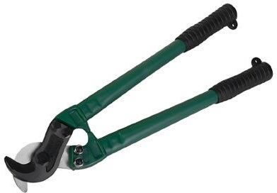 Nożyce do kabli o długości 450 mm wykonane ze stali chromowo-wanadowej przeznaczone do cięcia kabli miedzianych lub aluminiowych o przekroju 121 mm2. Posiadają długie ramiona tnące, które ułatwiają cięcie kabli o dużym przekroju.