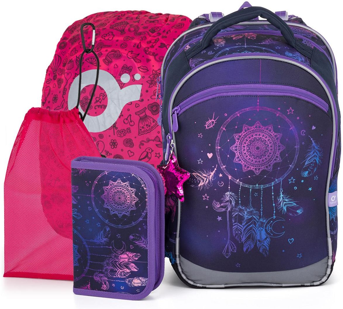 Zestaw do szkoły składający się z plecaka, piórnika, worka i pelerynki na plecak. Komplet szkolny składa się z produktów: COCO 25006 - Plecak szkolny łapacz snów, PENN 25006 - Piórnik szkolny z dwoma skrzydłami, ZUZA 19045 - Worek na obuwie, ZIGI 17002 - Peleryna na plecak