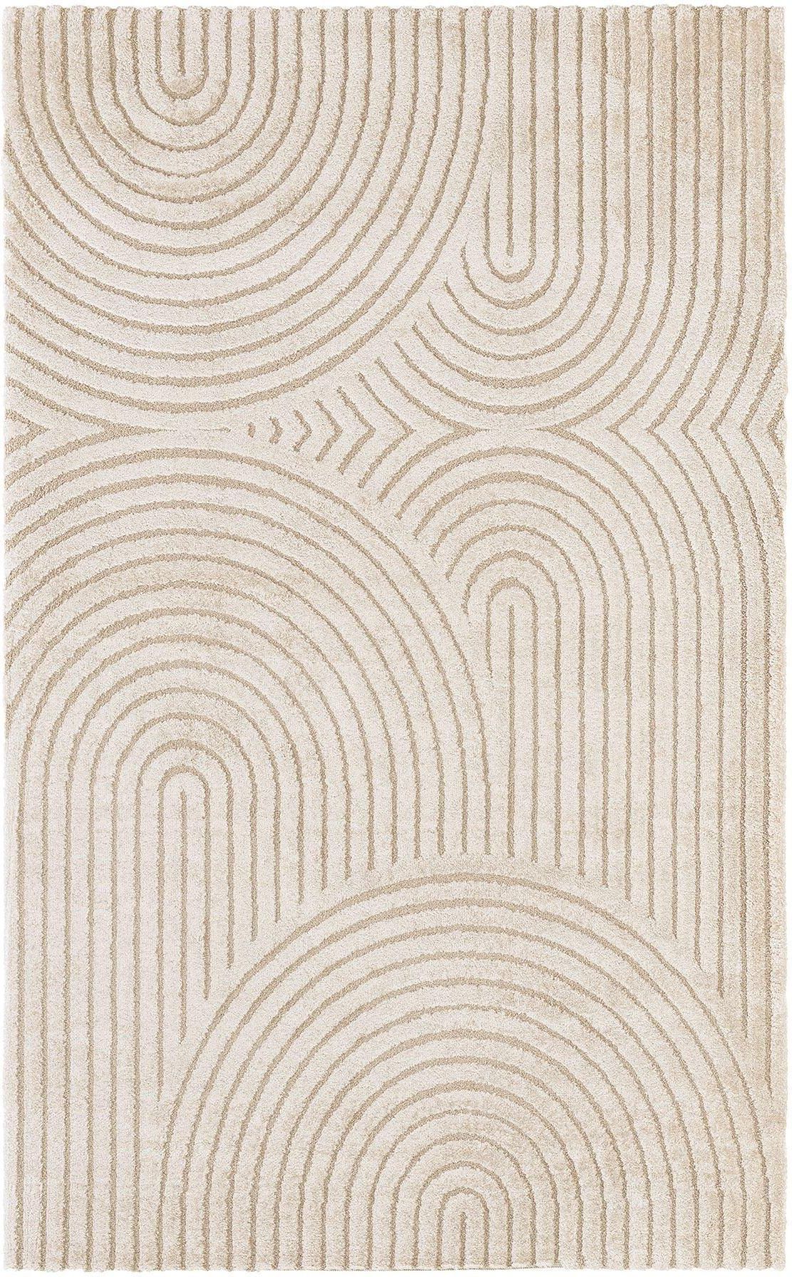 Elegancki dywan z geometrycznym wzorem łuków w subtelnym beżowym odcieniu. Dywan Lavia to idealny wybór dla osób poszukujących stylowych i praktycznych rozwiązań do swojego wnętrza. Dzięki subtelnemu odcieniowi beżu i efektownemu wzorowi geometrycznych łuków doskonale wpisuje się w nowoczesne aranżacje, dodając im harmonii i elegancji. Wykonany z wysokiej jakości materiałów, jest wyjątkowo miękki, co sprawia, że każdy krok po nim to czysta przyjemność. Ten antystatyczny dywan jest nie tylko piękny, ale również łatwy w pielęgnacji. Regularne odkurzanie wystarczy, aby zachować jego estetyczny wygląd, a powstałe plamy można szybko usunąć wilgotną ściereczką. To idealny dywan do salonu lub sypialni, gdzie miękka powierzchnia i funkcjonalność mają kluczowe znaczenie. Spraw, by Twoje wnętrze zyskało wyjątkowy charakter z dywanem Lavia! Wyprodukowano w Belgii.Wymiary: 200 x 290 cm.Skład: 72% polipropylen, 28% Virgin PES.Instrukcja czyszczenia: odkurzać regularnie, plamy usuwać wilgotną ściereczką, zalecane profesjonalne czyszczenie w przypadku uporczywych zabrudzeń.