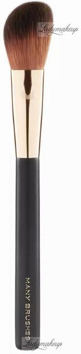 Many Brushes - Essentials - MB-04 marki Many Beauty. Pędzel do makijażu. Pochodzi z serii Essentials, która została stworzona z myślą o wykonaniu pełnego make-up'u twarzy, przez co zawiera wszystkie niezbędne pędzle do jego zrobienia. Od ciebie zależy na jaki obecnie postawisz - jeden czy może więcej modeli? Wariant MB-04 dedykowany jest do aplikacji produktów suchych oraz kremowych takich jak róż czy bronzer. Posiada puszystą i gęstą główkę o lekko ściętym kształcie. Wykonany został ze specjalnego syntetycznego włosia "Smooth-Touch" czyli mega puszystego nylonu, zwanego często syntetyczną wiewiórką. Takie włosie jest niesamowicie miękkie, elastyczne oraz gładkie w dotyku, dzięki czemu nie podrażnia i nie drapie nawet mocno wrażliwej skóry. Całość została umieszczona na odpowiednio wyprofilowanej rączce wykonanej z drzewa brzozowego, polakierowanego na czarno. W połączeniu ze złotą, aluminiową skuwką pędzel prezentuje się bardzo elegancko. Pędzel do różu.Z włosia syntetycznego. Jest miękki oraz elastyczny. Dobrze leży w dłoni podczas pracy.