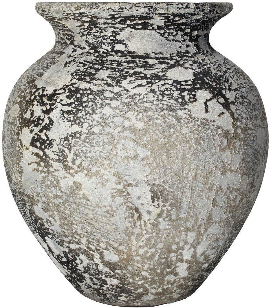 Wazon Patras 32x35cm, 32 x 35 cm Stylizowany wazon z gliny i terakoty. Wazon z efektem postarzania wyróżnia się niebywałą estetyką wykonania. Jego nieco surowy charakter doskonale kontrastuje z delikatnością roślinnych kompozycji: żywych kwiatów, wysokiej trawy pampasowej czy suszonych gałęzi, …