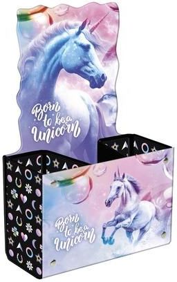 Pojemnik na przybory szkolne jednorożec 15. Sztywny, wykonany z grubej, laminowanej tektury pojemnik na przybory szkolne z nadrukiem licencyjnym. Posiada trzy przegrody, które pozwalają odpowiednio zorganizować przybory szkolne. Wymiary: 250x150 mm