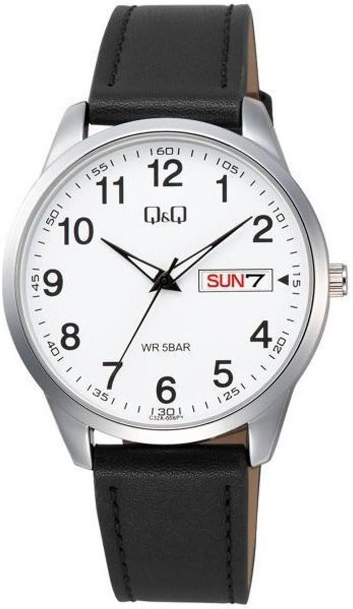Zegarek męski QQ na czarnym pasku C32A-006P wyposażony jest w kwarcowy mechanizm, zasilany za pomocą baterii. Posiada bardzo wysoką dokładność mierzenia czasu +/- 10 sekund w przeciągu 30 dni. Koperta zegarka: Mechanizm japoński mieści się w okrągłej, wytrzymałej kopercie. Koperta wykonana z ALLOY’u, czyli bardzo popularnego stopu metali na bazie mosiądzu. Charakteryzuje się stosunkowo niewielka wagą, a jednocześnie dużą wytrzymałością. Koperta nie zawiera niklu i innych pierwiastków szkodliwych dla zdrowia. Wykorzystanie wysokiej jakości stali w deklu (dolna część zegarka) gwarantuje, że czasomierz odporny jest na korozję i uszkodzenia oraz nie powoduje alergii. Stop stali szlachetnej charakteryzuje się optymalna odpornością na korozje. W zegarkach Q&Q wykorzystany jest jeden z najlepszych stopów stali 316 L. Szkło zegarka: Zegarek wyposażony w szkło mineralne ( 5 stopień w skali Mohsa) - najczęściej spotykane, bardzo przejrzyste, czyste, cienkie, elastyczne i odporne na pęknięcia. Tarcza zegarka: Tarcza zegarka okrągła, biała z wyraźnymi cyframi w czarnym kolorze idealnie pasuje do całości zegarka. Pasek zegarka: W zegarku zamontowano pasek z delikatnej skórki w kolorze czarnym z przeszyciami. Zapięcie zegarka: Tradycyjna sprzączka w srebrnym kolorze. Wodoszczelność zegarka: Zegarek z wodoszczelnością 50m (5 ATM), gwarantuje właścicielowi, że nie musi bać się zachlapań, czyli np. mycia rąk. Oprócz tego w zegarku można się kąpać, pływać na basenie itp. Zapoznaj się z pozostałą ofertą ofertą męskich zegarków. Zegarki męskie są dla mężczyzn praktycznym dodatkiem. Oprócz sprawdzenia czasu mężczyźni uwielbiają za pomocą zegarka sprawdzać swoją aktywność fizyczną. Aktualnie zegarki potrafią zachęcić do wzmożonej aktywności fizycznej poprzez posiadanie funkcji takich jak: zliczanie wyników, dopingowanie do osiągania wyznaczonego celu, wyniku aktywności w ciągu dnia. Swój wymarzony model znajdzie u Nas mężczyzna , który uwielbia domowe zacisze ale również Ci o mocno rozrywkowym trybie życia. Do wyboru mamy zatem typowo klasyczne modele o stonowanych kolorach, ekskluzywne zegarki złote męskie, czy modowe egzemplarze zachwycające swoim niebanalnym widokiem. Zegarek męski japońskiej marki Q&Q na rękę może przyjąć różny wygląd i styl. Niezwykle dużą popularnością cieszą się egzemplarze od tej wieloletniej firmy z tradycją. Marka ta zyskał uznanie na polskim rynku dzięki oryginalnym i ponadczasowym wzorom stosowanym w swoich produktach. Uniwersalne zegarki męskie czarne i białe o doskonałym wykonaniu skradają serca wielu Panów w różnym wieku. Niektóre to całkowicie klasyczne modele, inne bardziej szałowe zyskały intensywny złoty kolor oraz różnego rodzaju zdobienia w postaci szlifu słonecznego lub nałożonych na tarczę połyskujących kamyków. Bez najmniejszego problemu znajdziemy tutaj modowe zegarki na bransolecie męskie, czy proste na tradycyjnym skórzanym pasku. Marka japońskich zegarków Q&Qpojawiła się na rynku po raz pierwszy w roku 1976. Od pewnego czasu, marka Q&Q rozwija się prężnie w dziedzinie zegarków elektronicznych, i analogowych zegarków kwarcowych. Sama nazwa – Q&Q – pochodzi od angielskiego Quality & Quantity (Jakość i Ilość), co oznacza produkcję z zachowaniem wysokich standardów jakości. Każdy znajdzie dla siebie odpowiedni zegarek ,szeroki asortyment marki, bogate wzornictwo i nowoczesne technologie zadowolą każdego użytkownika. Nasz sklep internetowy z zegarkami Q&Q jest autoryzowanym dystrybutorem marki. Wszystkie damskie i męskie zegarki Q&Q zakupione w naszym sklepie posiadają 2 letnią gwarancję (z możliwością przedłużenia gwarancji do 3 lat) i zapakowane są w oryginalne opakowanie producenta. Jest to eleganckie pudełko do zegarka z logiem japońskiej marki Q&Q.