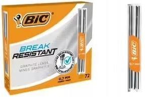 Wkłady Break Resistant 0,7mm (72szt) BIC EAN: 3086123777460 SID: 3634487 Wkłady Break Resistant 0,7mm (72szt) BIC Dzięki wkładom 0,7 mm z grafitu nasyconego zwiększającymi trwałość nanodiamentami odporny na złamania ołówek automatyczny BIC będzie Ci służył praktycznie bez końca. Opakowanie zawiera 2 tubki po 6 wkładów oraz 2 gumki. Specjalnie opracowany grafit w połączeniu z unikalnym mechanizmem pochłaniania wstrząsów w tym ołówku oznacza, że możesz poświęcić więcej czasu na pisanie, a mniej na pstrykanie w celu wysunięcia złamanego grafitu. Uzupełnianie odpornego na złamania ołówka automatycznego BIC jest bardzo łatwe: wystarczy zdjąć górną część i włożyć do 3 nowych wkładów. Wreszcie możesz cieszyć się wyjątkowo odpornym grafitem, który nie łamie się podczas pisania. To pomysłowość BIC.