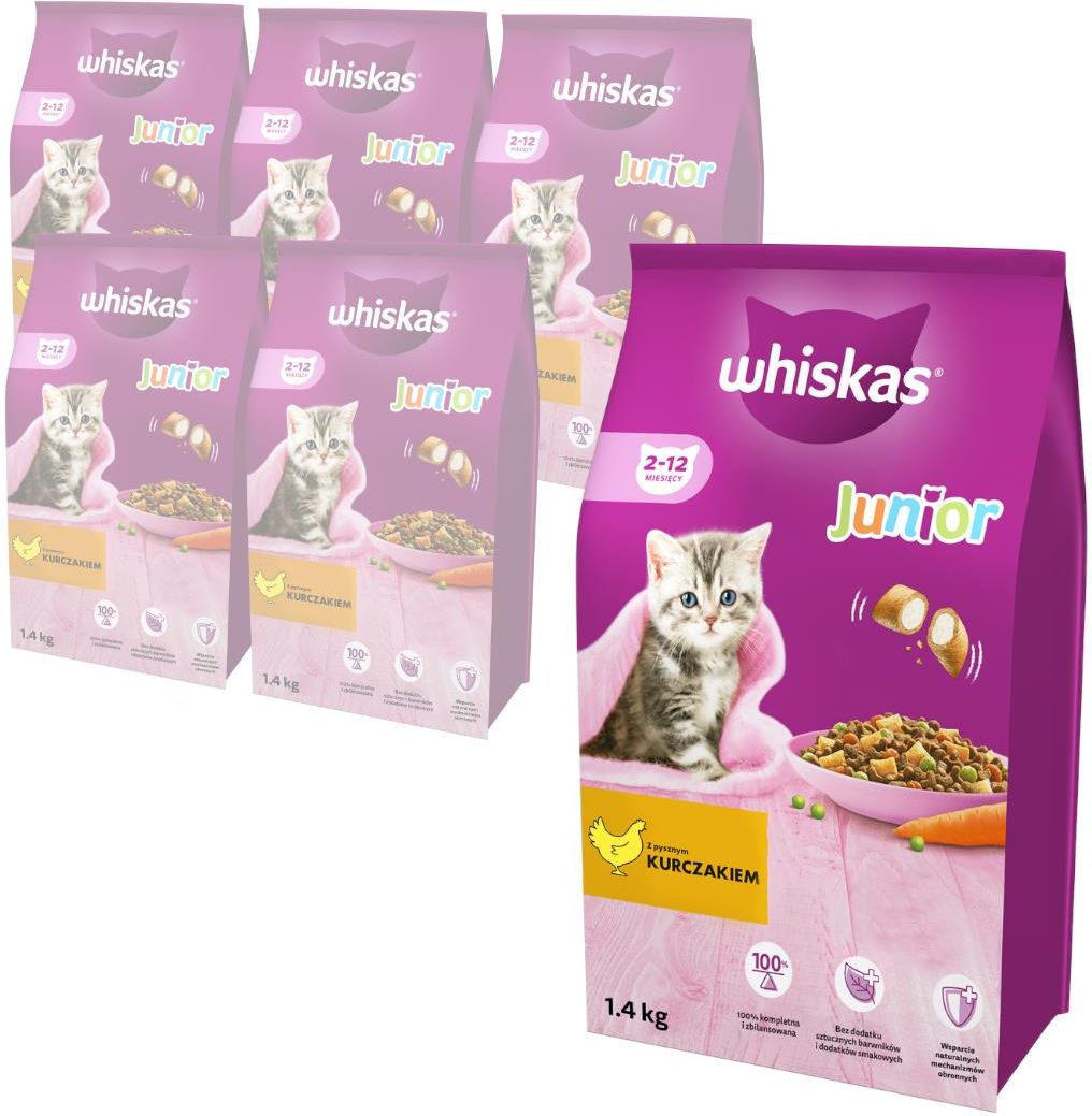 Whiskas Junior Sucha Pełnoporcjowa Dla Kociąt Z Pysznym Kurczakiem 6x1,4kg Bolków