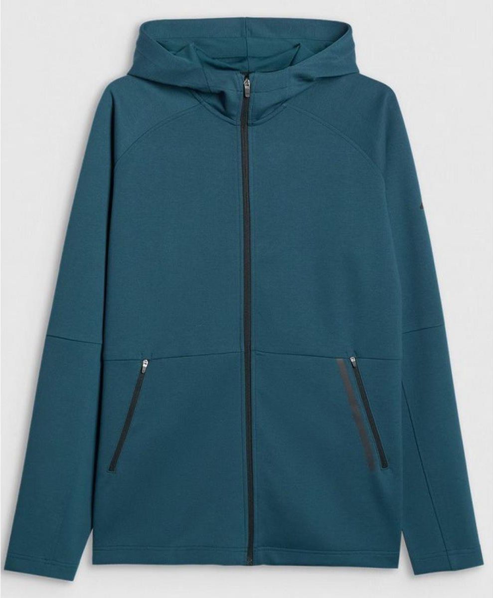 Bluza męska 4F zapewni komfort zarówno na co dzień, jak i podczas aktywności w plenerze. Klasyczny krój z obniżoną linią ramion i standardową długością sięgającą do bioder naturalnie układa się na sylwetce dbając nieograniczony zakres ruchów. Przyjemna w dotyku tkanina ma właściwości szybkoschnące i dba o zachowanie naturalnej przewiewności. Konstrukcja z jednokierunkowym zamkiem umożliwia wybór dogodnej formy noszenia. Nieodpinany kaptur bez regulacji tworzy dodatkową osłonę przed niekorzystnymi warunkami atmosferycznymi. Dwie, zapinane kieszenie tworzą praktyczną przestrzeń dla drobiazgów. Odblaskowe elementy poprawiają Twoją widoczność, gdy chcesz kontynuować aktywność w gorszych warunkach oświetleniowych. Bluza to połączenie funkcjonalności z komfortem, które są niezbędne podczas aktywności w zmiennych warunkach pogodowych. Dane techniczne:· Materiał główny: 61% poliester, 32% wiskoza, 7% elastan· Podszewka: 100% poliester· Miękka dzianina - zapewnia wygodę i przyjemnie otula ciało· Regularny krój - gwarantuje wygodne dopasowanie· Raglanowe rękawy· Elementy odblaskowe -zwiększają widoczność po zmroku· Dwie kieszenie na zamek - do przechowywania drobiazgów