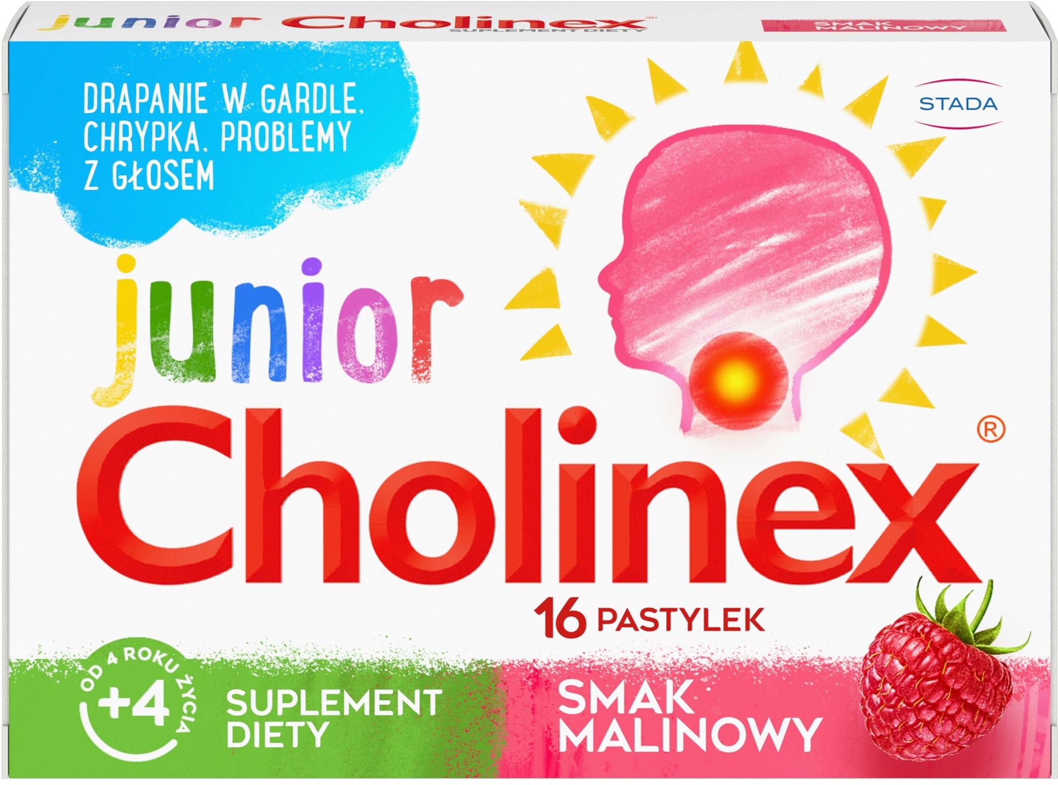 Opinie Cholinex Junior Pastylki do ssania o smaku malinowym na podrażnione gardło i krtań 16 szt. Borne Sulinowo