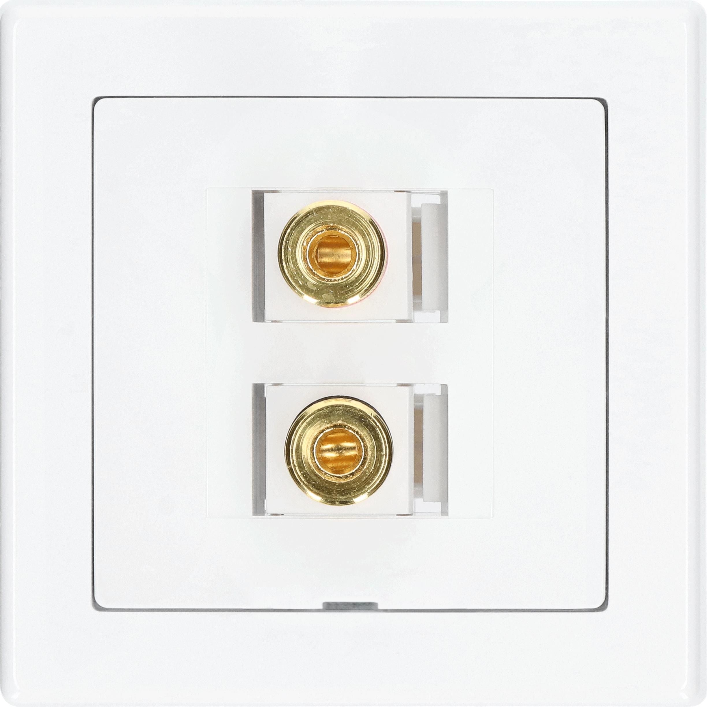 Gniazdo głośnikowe (kolumnowe) banan serii JOWISZ w kolorze białym. Model: GG-B Jw biały Parametry gniazda: Montaż przewodów: wsuwki lub lutowanie Montaż gniazda: puszka podtynkowa Ø60 Wymiary: 81 x 81 mm Rodzaj materiału: tworzywo ABS Gniazdo rozbieralne w komplecie z ramką pojedynczą. Stopień ochrony w oferowanym gnieździe to IP20. Produkt polskiej produkcji. Spełnia europejskie normy CE, posiada certyfikaty oraz świadectwa zgodności. zdjęcie poglądowe wkładki Keystone * konektory zaciskowe dołączone do modułów
