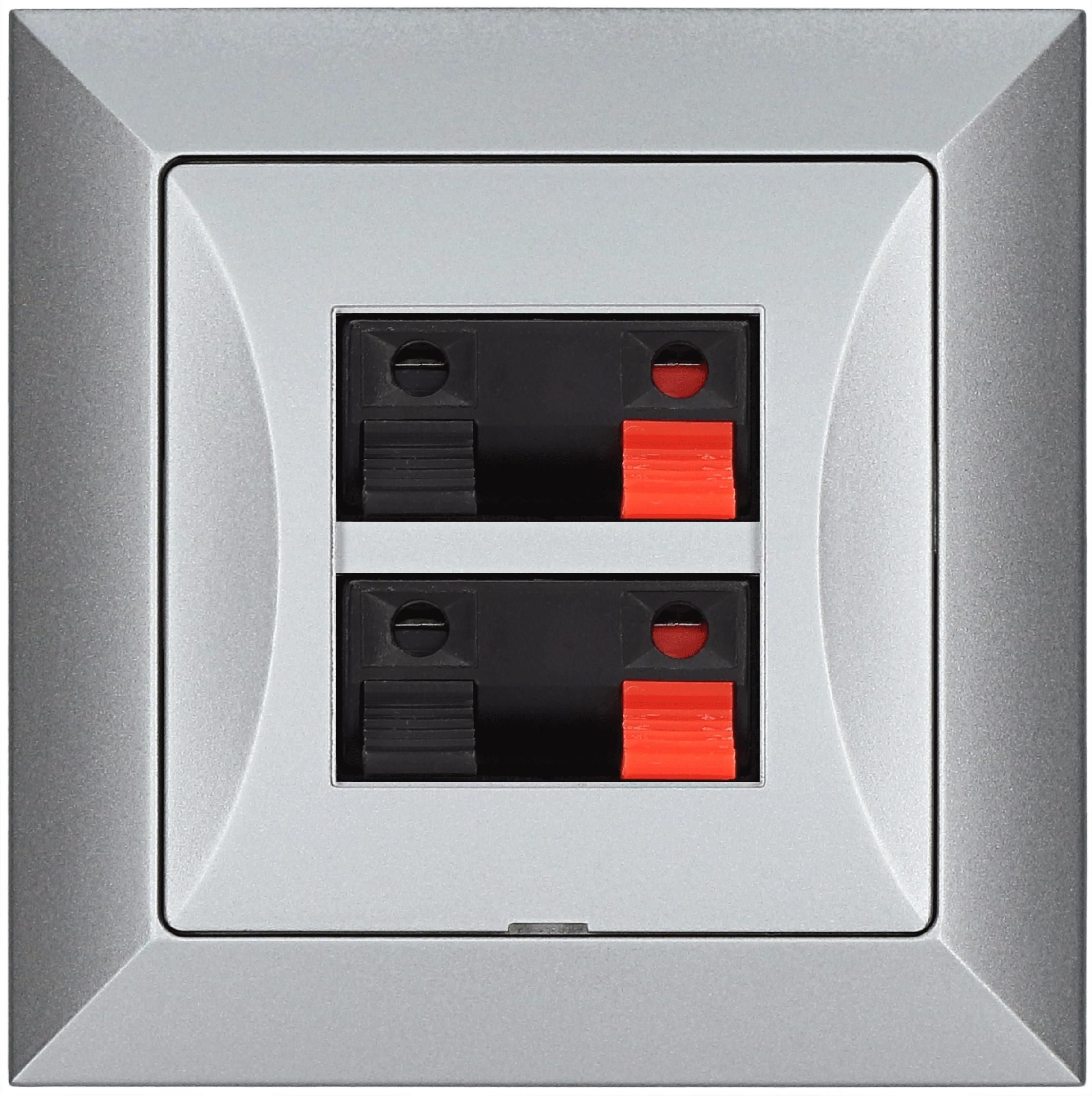 Gniazdo głośnikowe (kolumnowe) podwójne serii OPAL w kolorze srebrnym. Model: GG-2 Op srebrny Gniazdo w komplecie z ramką pojedynczą. Parametry gniazda: Montaż przewodów: wsuwki lub lutowanie Montaż gniazda: puszka podtynkowa Ø60 Wymiary: 81 x 81 mm Rodzaj materiału: tworzywo ABS Seria modułowa, można montować w ramkach wielokrotnych dostępnych na naszych aukcjach. Stopień ochrony w oferowanym gnieździe to IP20. Produkt polskiej produkcji. Spełnia europejskie normy CE, posiada certyfikaty oraz świadectwa zgodności. Producentem produktu jest firma Timex-Elektro.