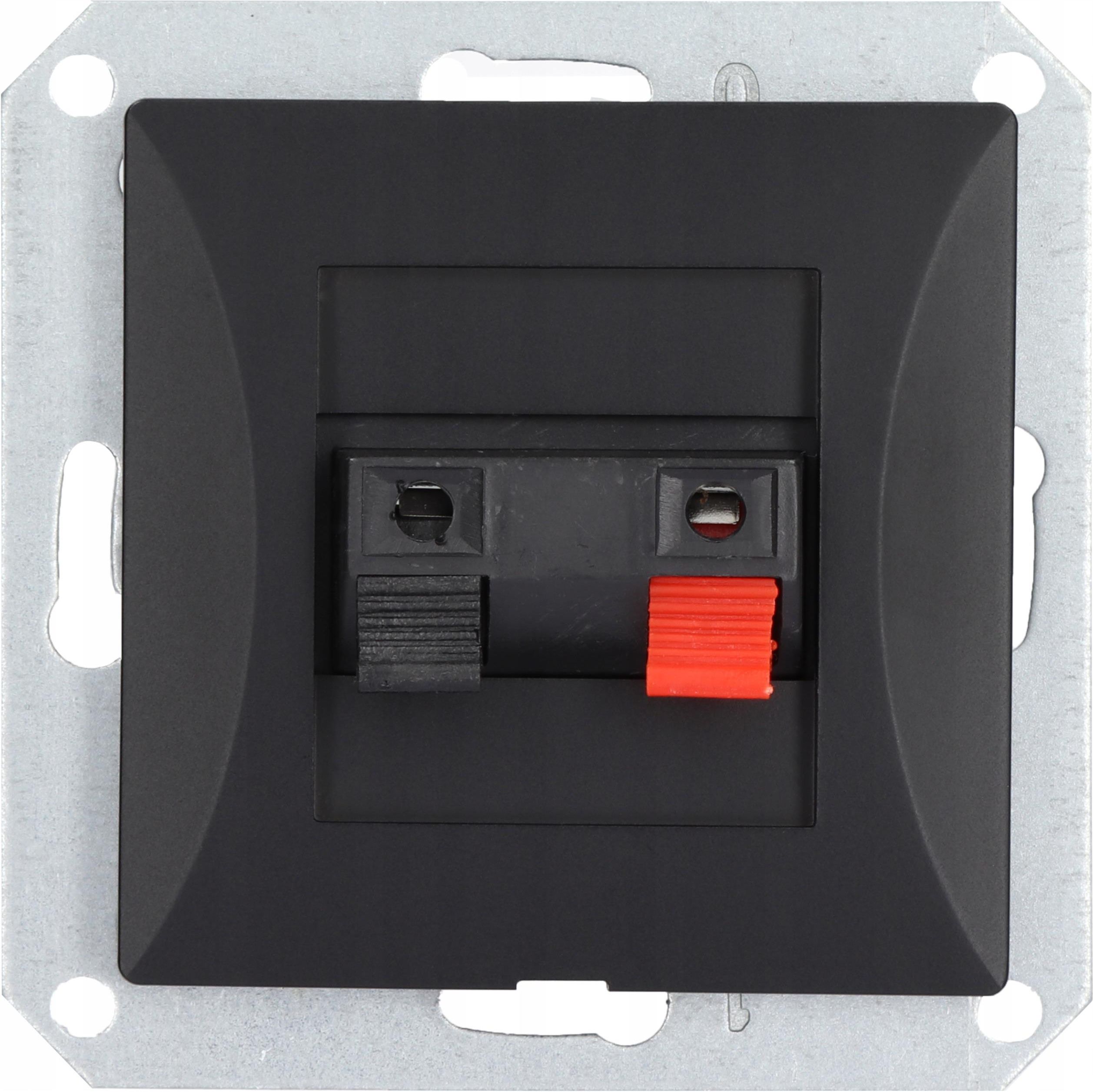 Gniazdo głośnikowe (kolumnowe) serii OPAL w kolorze czarnym matowym. Model: GG-1 Op Moduł czarny mat Moduł gniazda bez ramki. Parametry gniazda: Montaż przewodów: wsuwki lub lutowanie Montaż gniazda: puszka podtynkowa Ø60 Rodzaj materiału: tworzywo ABS Seria modułowa, można montować w ramkach wielokrotnych dostępnych na naszych aukcjach. Pasuje tylko do ramek serii Opal. Stopień ochrony w oferowanym gnieździe to IP20. Produkt polskiej produkcji. Spełnia europejskie normy CE, posiada certyfikaty oraz świadectwa zgodności. Producentem produktu jest firma Timex-Elektro.