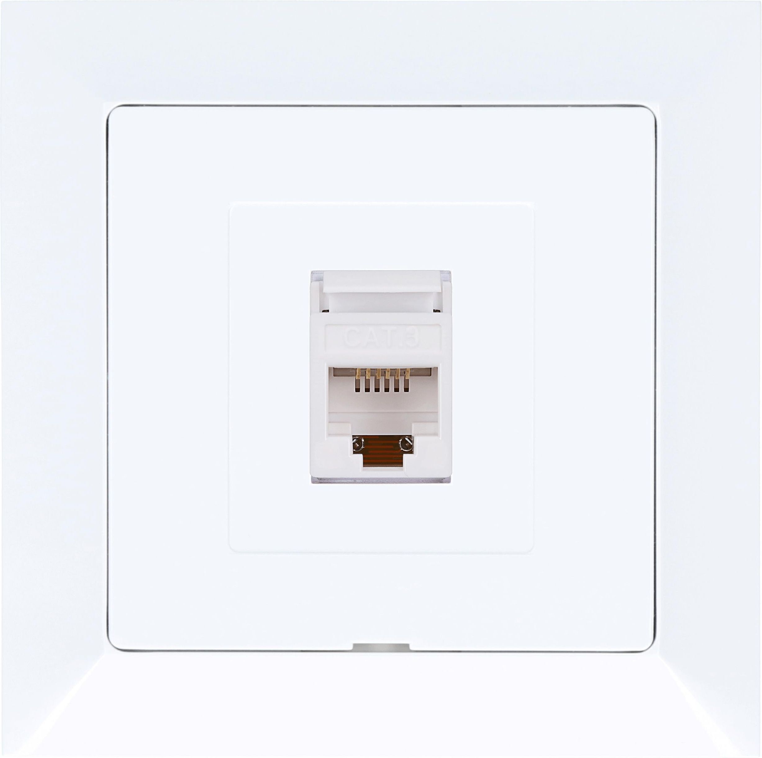 Gniazdo telefoniczne serii PREMIUM w kolorze białym. Model: GTP-11 Pr biały Gniazdo w komplecie z ramką pojedynczą. Parametry gniazda: 6-PIN RJ11 RJ14 kategoria 3 Wkładka Keystone Montaż przewodów: beznarzędziowy Montaż gniazda: puszka podtynkowa Ø60 Wymiary: 81 x 81 mm Rodzaj materiału: tworzywo ABS Seria modułowa, można montować w ramkach wielokrotnych dostępnych na naszych aukcjach. Stopień ochrony w oferowanym gnieździe to IP20. Produkt polskiej produkcji. Spełnia europejskie normy CE, posiada certyfikaty oraz świadectwa zgodności. zdjęcie poglądowe wkładki Keystone Producentem produktu jest firma Timex-Elektro.