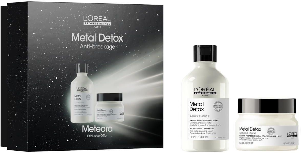 L’ORÉAL PROFESSIONNEL Serie Expert Meteora Metal Detoxzestaw do włosów farbowanych i zniszczonych oczyszczenie włosów z metali i ochrona koloru farbowanych włosów W zestawie:Szampon do włosów farbowanych Metal Detox 300 mlMaska do włosów farbowanych Metal Detox 250 mlPudełko prezentowe Poznaj …