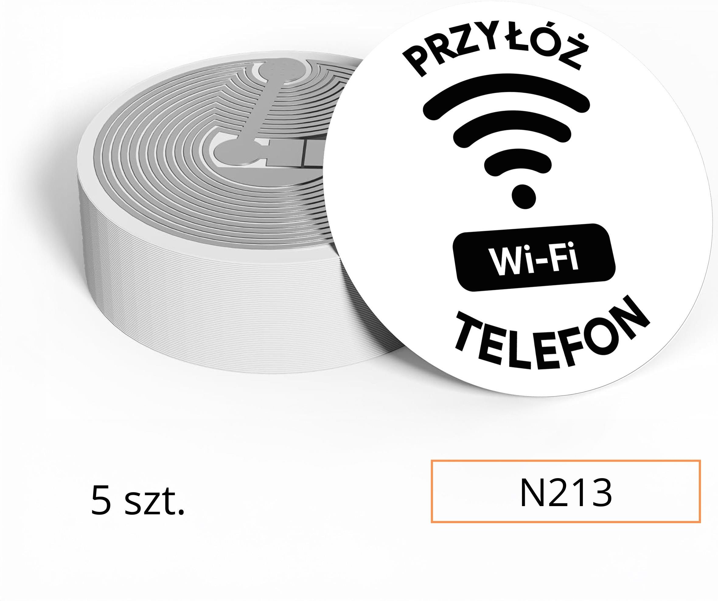 Naklejki NFC Wi-Fi Ø2,5 cm – przyłóż telefon Wi-Fi, wodoodporne 5 szt Borne Sulinowo