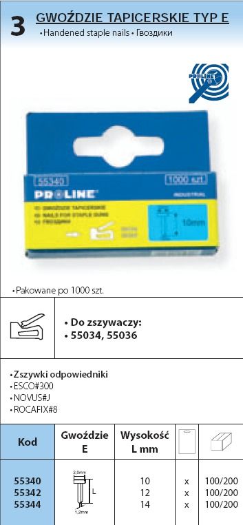 Proline GWOŹDZIE TAPICERSKIE TYP E WYSOKOŚĆ 14 mm 55344 Borne Sulinowo