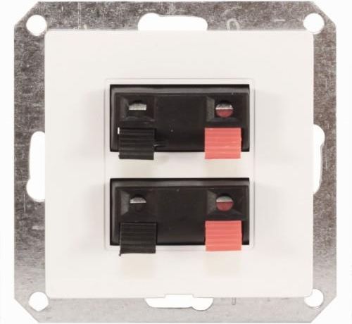 Gniazdo głośnikowe (kolumnowe) podwójne serii PREMIUM w kolorze białym. Model: GG-2 Pr Moduł biały Moduł gniazda bez ramki. Parametry gniazda: Montaż przewodów: wsuwki lub lutowanie Montaż gniazda: puszka podtynkowa Ø60 Rodzaj materiału: tworzywo ABS Seria modułowa, można montować w ramkach wielokrotnych dostępnych na naszych aukcjach. Pasuje do ramek serii Premium i Magic. Stopień ochrony w oferowanym gnieździe to IP20. Produkt polskiej produkcji. Spełnia europejskie normy CE, posiada certyfikaty oraz świadectwa zgodności. Producentem produktu jest firma Timex-Elektro.