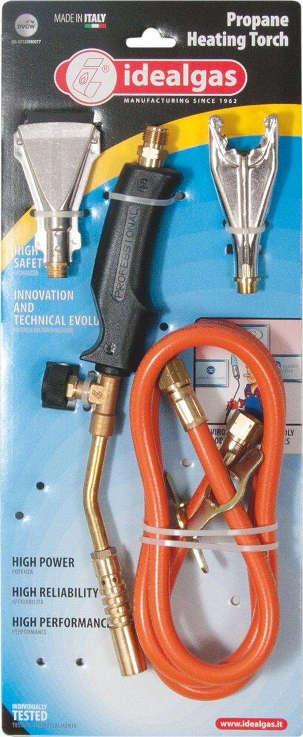 PALNIK DO LUTOWANIA 3 DYSZE IDEALGAS IDEALGAS PALNIK GAZOWY LUTOWNICZY +3 KOŃCÓWKI Palnik lutowniczy idealny do profesjonalnych zastosowań, posiada 3 dysze co pozwala na dostosowanie końcówki do lutowanego materiału. Znajdzie zastosowanie przy obróbce blach, rynien, itp. Palniki profesjonalne Idealgas zostały zaprojektowane i wyprodukowane w całości we Włoszech. Wytrzymałe tworzywa z których zostały wykonane charakteryzują się dużą odpornością na uszkodzenia mechaniczne oraz wysokie temperatury. Wszystkie palniki posiadają certyfikat DVGW i spełniają najwyższe normy bezpieczeństwa. DANE TECHNICZNE Gaz: LPG Długość palnika: 400mm Średnica dyszy 17mm: 140 g/h, 2,75 kW Średnica dyszy 40mm: 220 g/h, 3,0 kW Średnica dyszy 22mm: 220 g/h, 3,0kW