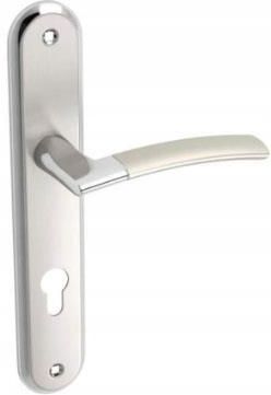 Informacja o produkcie wersja na wkładkę Rozstaw: 72 mm Segment klamek: Classic Styl: Klasyczny Rodzaj: Wewnętrzna Typ: Szyld długi Wykończenie: Satyna/chrom Materiał wykonania rękojeści: Aluminium Materiał wykonania szyldu: Stal Długość rękojeści: 120 mm Wysokość: 243 mm Szerokość: 43 mm Głębokość …