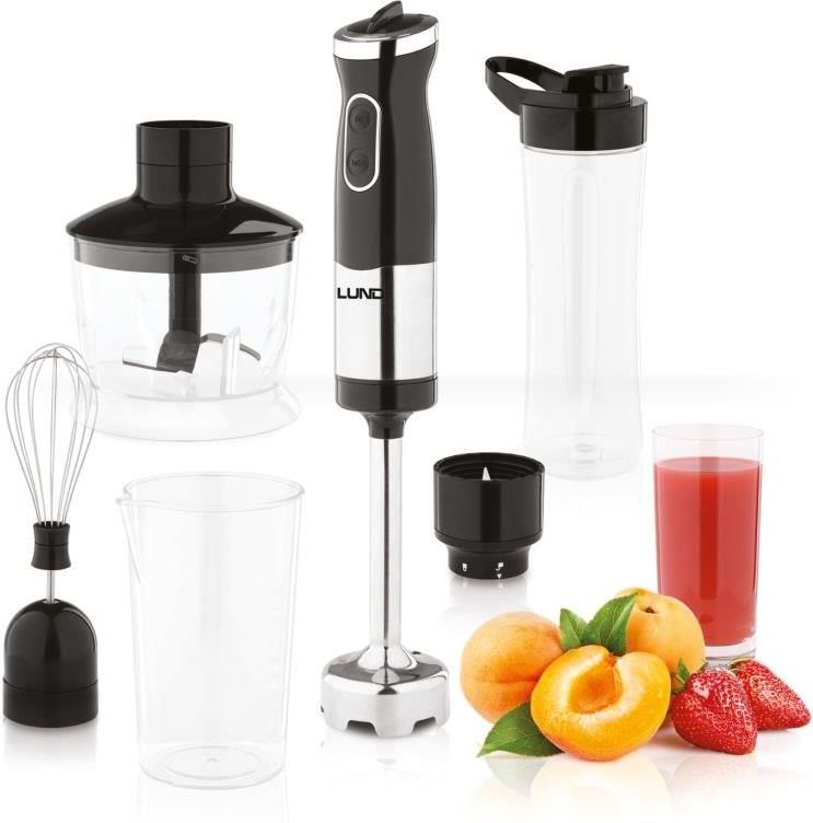 Opis produktu Wielofunkcyjny blender ręczny Lund o mocy maksymalnej 1100 W i płynnej regulacji prędkości gwarantuje szybką i wydajną pracę. Oprócz podstawowych akcesoriów wyposażony jest również w ostrze oraz bidon do szybkiego przygotowania smoothie. Informacje Moc: 700W Moc maksymalna: 1100W Napięcie: 220-240V 50Hz Płynna regulacja prędkości Tryb TURBO Obudowa: ABS, stal nierdzewna, chromowane elementy Długość kabla: 110 cm Wymiar blendera: 20,5cm x 5,5 cm Akcesoria Trwałe ostrze ze stali nierdzewnej Trzepaczka do ubijania piany ze stali nierdzewnej Kubek (pojemnik) do ubijania 0,5 litra Malakser o pojemności 0,5 litra z ostrzem ze stali nierdzewnej Butelka o pojemności 0,6 litra wykonana z tritanu (BPA Free) z ostrzem ze stali nierdzewnej, szczelna zakrętka Podstawka na akcesoria (trzepaczkę i ostrze) Zalety Wielofunkcyjność - blendowanie, szatkowanie, ubijanie piany oraz przygotowanie napoju; ułatwi przygotowanie dania głównego, zupy, deseru i napoju Jakość pracy - zagwarantowana dzięki mocnemu silnikowi o mocy maksymalnej 1100W Wygląd - klasyczny, czarny kolor z elementami stali nierdzewnej pasuje do każdej kuchni Uniwersalność - płynna regulacja poziomu prędkości ułatwi jej dostosowanie do blendowanej żywności Przechowywanie - podstawka na ostrze i trzepaczkę ułatwia przechowywanie akcesoriów Wyposażenie standardowe Blender Pojemnik Malakser z ostrzem Butelka z ostrzem i zakrętką Ostrze Trzepaczka Podstawka na ostrze i trzepaczkę Dane techniczne Moc: 700W Moc maksymalna: 1100W Napięcie: 220-240V Częstotliwość: 50/60Hz Pojemność pojemnika: 0,5 litra Pojemność malaksera: 0,5 litra Wymiary zewnętrzne urządzenia gotowego do pracy: 205x55 mm Materiał obudowy: ABS Rodzaj ostrza: 4-ramienne Materiał ostrza: Stal nierdzewna Materiał trzepaczk: Stal nierdzewna Liczba poziomów prędkości: Turbo Pojemność butelki: 0,6 litra Materiał butelki: Tritan wolny od BPA Cyfrowy panel sterowania: Nie Regulacja prędkości: Tak Długość przewodu: 1,1 m Klasa izolacji elektrycznej: II Stopień ochrony: IPX0 Masa: 0,6 kg Funkcje: Blendowanie, szatkowanie, ubijanie piany, przygotowywanie napojów Gwarancja: 24 miesiące - osoba prywatna, 12 miesięcy - firma Mimo dołożenia wszelkich starań nie gwarantujemy, że publikowane dane techniczne i zdjęcia nie zawierają uchybień lub błędów, które nie mogą jednak być podstawą do roszczeń.
