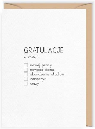 Nowoczesne formy składania życzeń wypierają powoli tradycyjne wysyłanie kartek okolicznościowych. A przecież życzenia pisane na klawiaturze nigdy nie zastąpią tych pisanych ręcznie! Każdego z nas cieszy kartka znaleziona w skrzynce pocztowej, więc spraw radość bliskim i wyślij kartkę:) <3Otwierana kartka, pusta w środku, wykonana na papierze (z certyfikatem EFC) z wyraźnie widoczną fakturą. W zestawie ekologiczna koperta.Wymiary kartki: 12 cm x 17 cmKup znaczek online bez wychodzenia z domu: www.envelo.pl