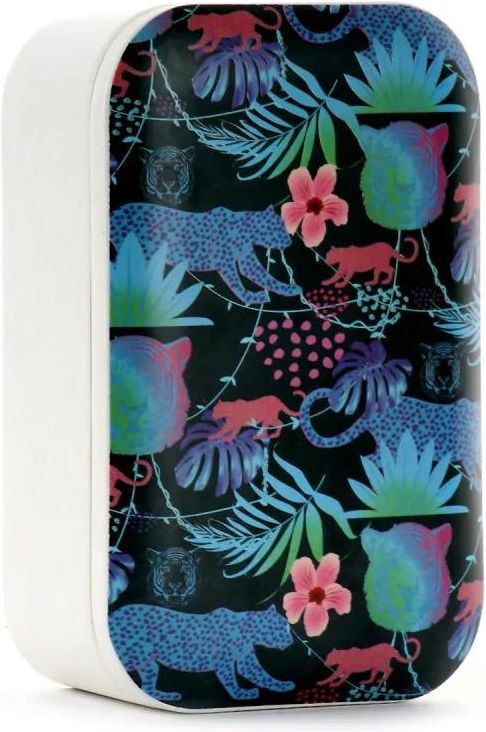 - pojemnik na lunch z limitowanej kolekcji Neon Jungle - pokrywa ozdobiona nadrukiem gepardów oraz egzotycznych roślin - silikonowa opaska dodatkowo przytrzymuje pokrywę - możliwość mycia w zmywarce - nie do użytku w mikrofali - materiał: włókno bambusowe