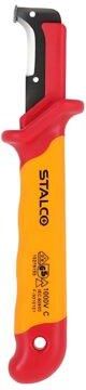 Nóż monterski hakowy o długości 180 mm. Dwumateriałowa rękojeść poprawia ergonomię i posiada właściwości antypoślizgowe. Specjalnie zakończone ostrze pozwala na szybkie i proste rozcinanie izolacji przewodów o dużym przekroju. Nóż hakowy posiada certyfikaty VDE GS i IEO60900 gwarantujące bezpieczną pracę pod napięciem do 1000 V.