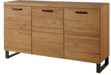 Komoda 3-drzwiowa do salonu PRATTO 45 Przepiękna, minimalistyczna 3-drzwiowa komoda do salonu. To elegancki i efektowny mebel od Szynaka Meble z linii Prestigeline, wykonany z solidnej płyty meblowej w naturalnej okleinie dębowej,wewn: płyta meblowa w dekarze drewnopodobnym. Fronty wykonane sa natomiast z litego drewna w kolorze dębu rustykalnego z metalowymi elementami. To idealna propozycja dla miłośników elementów prostych i jednocześnie tworzących niebanalny klimat. Szerokość: 150 cm Wysokość: 90 cm Głębokość: 42 cm Kolor: dąb rustical/lakier z elementami czarny mat