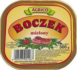 KARTON ZBIORCZY ZAWIERA - 6 SZTUKSKŁADNIKI:mięso oddzielone mechanicznie z kurczaka 30 %, woda, mięso wieprzowe boczkowe 15 %, skórki wieprzowe, kasza manna z Pszenicy, skrobia modyfikowana E1412, błonnik roślinny bambusowy, sól, stabilizatory: E451i, E450iii, E331iii, substancja zagęszczająca …