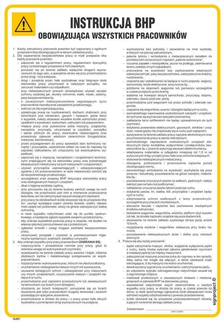 Libres Polska Sp Iaa01 Instrukcja Ogólna Bhp Obowiązująca Wszystkich Pracowników (24,5x35 Cm, Pn Płyta 1Mm) Brok